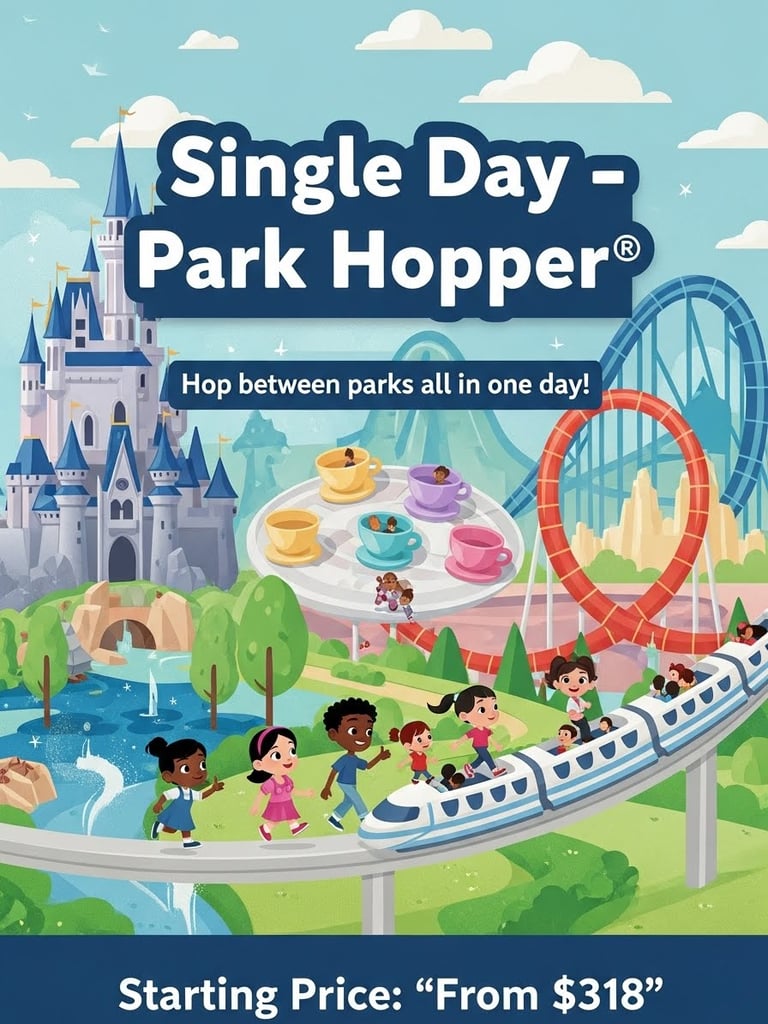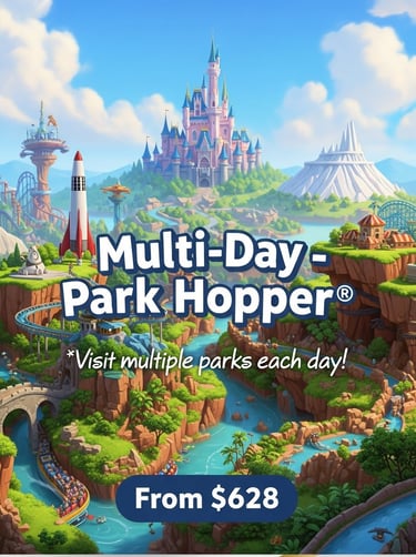 Explore the magic with our Walt Disney World® park tickets! From single-day visits to multi-day adventures with Park Hopper and water park options, we make it easy to plan the perfect Disney experience. These are just some of the options available—call or message us for a full list tailored to your trip.
