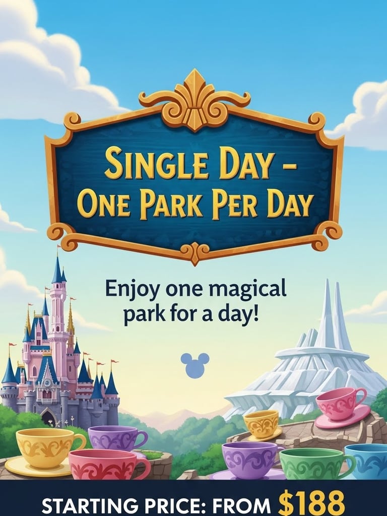 Visit one theme park for a full day of Disney magic. Includes admission to the park of your choice and access to park attractions and shows. Starting at $188..