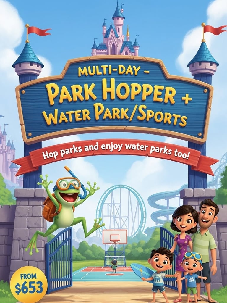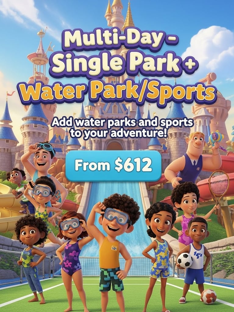 Combine your multi-day park tickets with Disney water parks and sports activities. Includes one park per day, plus water park visits, mini-golf, and other Disney sports options. Starting at $612.